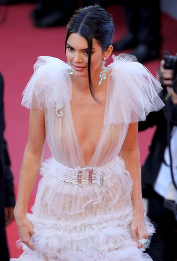От противного идет подруга Беллы Кендалл Дженнер: представительница знаменитого телеклана, собираясь на премьеру фильма «Девушки солнца» (Les Filles Du Soleil), выбрала белое платье от Бертрана Гийона, креативного директора Schiaparelli. Его изюминка — практически прозрачный верх: даже при небольшом увеличении фотографий грудь самой высокооплачиваемой модели можно рассмотреть во всех подробностях. Впрочем, навряд ли кто-то осмелится обвинить Дженнер в неподобающем виде. В белом платье с длинной юбкой, украшенной рядами пышных оборок, нет ни намека на вульгарность — невесомая конструкция, похожая на воздушное облако, избавляет наряд от излишней эротической коннотации. Кроме того, обнаженная (или полуобнаженная) женская грудь без сексуального подтекста — предмет борьбы активисток движения Free The Nipples, и Кендалл помогает им в этом нелегком деле.
