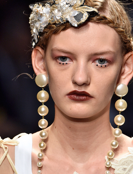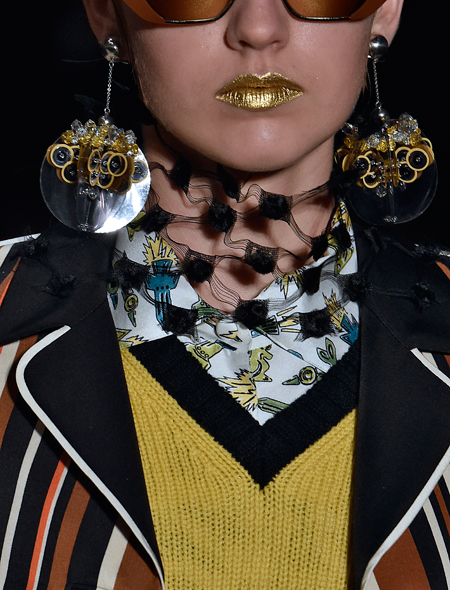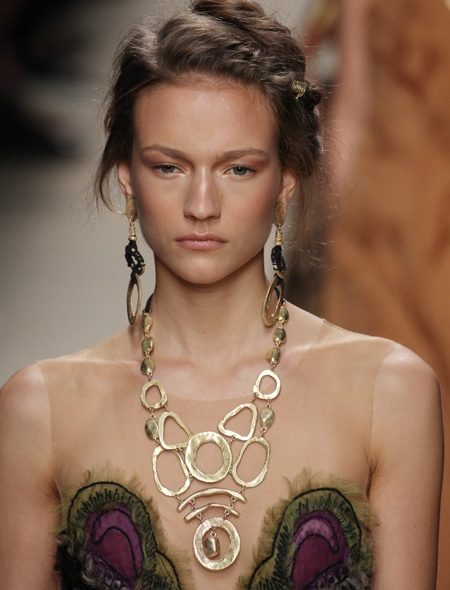 Запоминаем: серьги - самое главное украшение сезона. В этом единодушны все дизайнеры. Серег может быть две, при этом, совсем необязательно – одинаковых, либо одна, но достаточно крупная (или длинная). В моде на серьги уже который год правит асимметрия - и это тоже важно помнить. А вот размеры... В этом сезоне украшения укрупнились до «критической массы». Что касается формы, то тут первенство держат кольца и цепи – как и положено, почти космических размеров и дизайна. На втором месте – серьги в виде подвесок: чем длиннее, тем лучше, естественным ограничением может стать только длина вашей шеи, хотя и это не проблема. Для хрупких созданий есть серьги изящные, как у Celine и романтичные как у Roberto Cavalli. Для любительниц гротеска - Marni. И отдельно стоящая реальность – моно-серьга Dior - футуристическая и прекрасная. Не нравится футуризм - вешайте на уши... фрукты: достойный подражания пример подан Dolce & Gabbana. Листаем слайдер ниже и вдохновляемся: