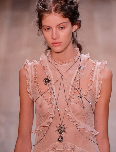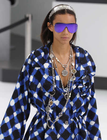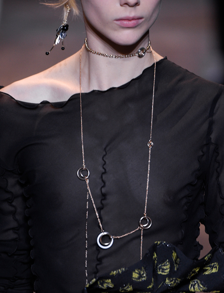 В моде все, что сделано из звеньев, напоминающих цепи: серьги, чокеры, браслеты, пояса. Как самостоятельное украшение цепь обязана быть многослойной и обязательно длинной. За идеями идем к Chanel, Alexander McQueen и Dior. Но имейте в виду, что звездный час многоярусные колье из цепей разного калибра ожидает осенью. Так что, летом не увлекайтесь.