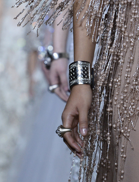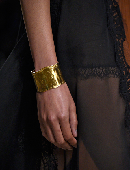 Еще один безусловный must-have летнего сезона, присутствующий в подавляющем большинстве дизайнерских коллекций. Крупный широкий браслет в виде металлической пластины, либо составной, комбинированный из нескольких звеньев металла, ткани и пластика, - обязательно парный, то есть, на каждую руку. И, кстати, имеем в виду, что любимые часы придется оставить дома, т.к. это самостоятельный аксессуар, с трудом сочетаемый с браслетами-манжетами. Идеи черпаем, листая слайдер:
