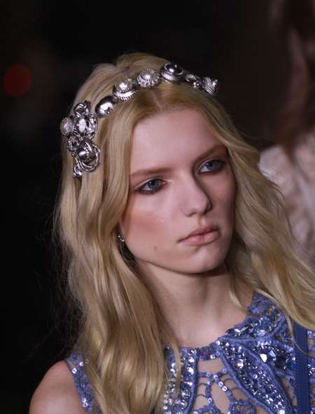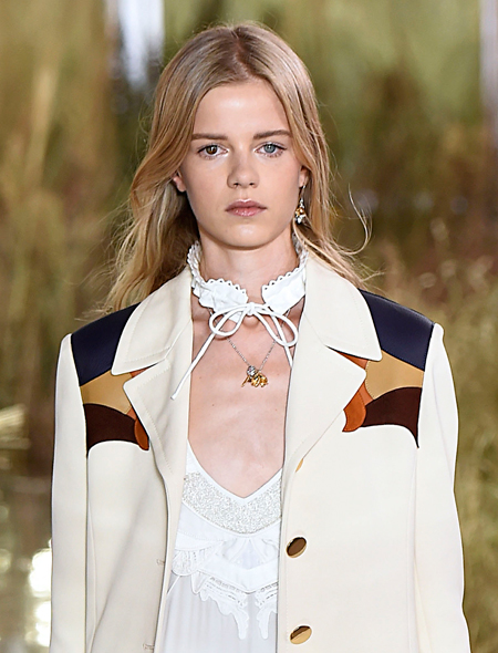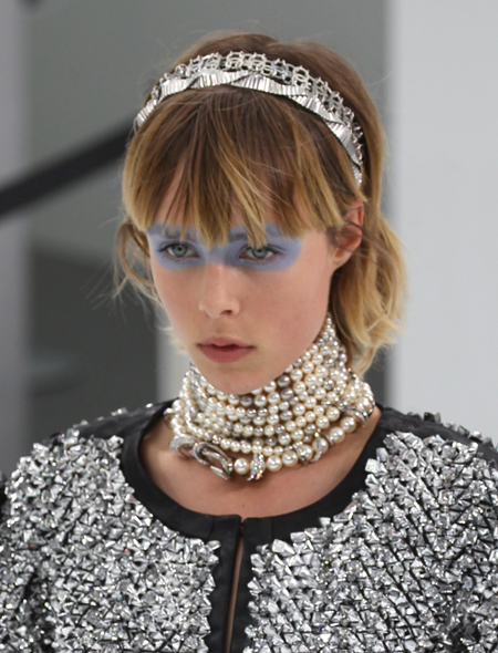 Он же – ожерелье, сильно напоминающее ошейник. Местами даже очень: многие дизайнеры в этом году предложили украшения в виде плотно облегающих шею тканевых повязок. Такие есть, например, у Missoni, Elie Saab и, конечно, у Dior. Последние предлагают сочетать тканевую основу и собственно «ошейник» из металла и стекла. Красиво и необычно. У Coach другое не менее интересное предложение к лету – их повязки на шею напоминают воротнички в стиле ретро и сочетаются практически с любым нарядом – будь то сарафан или футболка. Не нравится ткань – есть идеи в металле и пластике у Emporio Armani, Jean Paul Gaultier, Louis Vuitton. Отдельного внимания стоит дизайн «ошейников» у Prada: в виде красивой сетки – любого цвета на выбор. Чокеры Chanel – это многорядные бусы и цепи, которые при всей своей нарядности отлично смотрятся и с твидовым пиджаком, и с трикотажным свитшотом. Сочетать, как показывает практика, чокеры можно и с тиарами (о них ниже), и с браслетами (расскажем и про них). Ну а облегченный тканевый «ошейник» не станет помехой и для крупных серег.