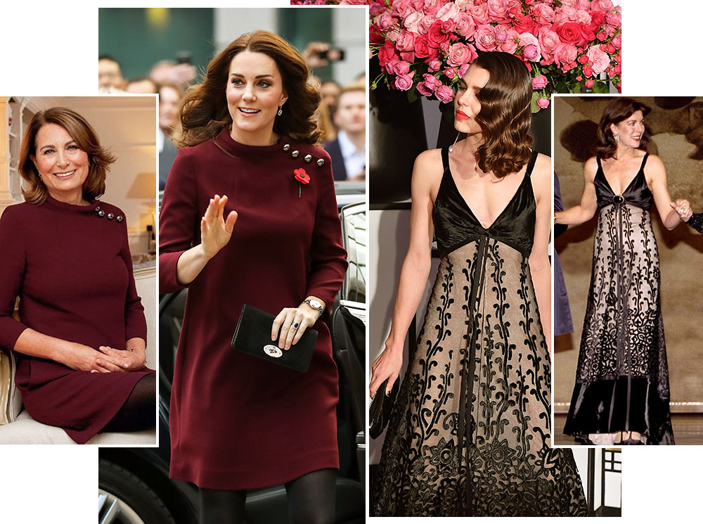 В том, что герцогиня Кэтрин и ее мать демонстрируют схожее чувство стиля, сомневаться не приходится: достаточно посмотреть на образы обеих женщин на формальных мероприятиях вроде скачек в Аскоте или Уимблдона. Но, что важно, периодически мы видим супругу принца Уильяма ровно в таких же нарядах, в которых ранее появлялась Кэрол, — и наоборот. Кто у кого заимствует наряды — все еще загадка, но мы все же склоняемся в пользу версии «дочь — у матери», ведь чаще всего совпадения происходят именно во время беременностей Кейт, когда ей нужны вещи большего размера.