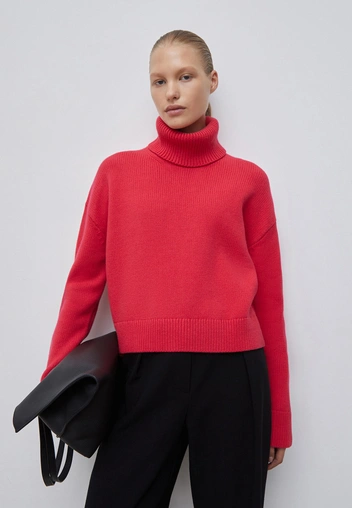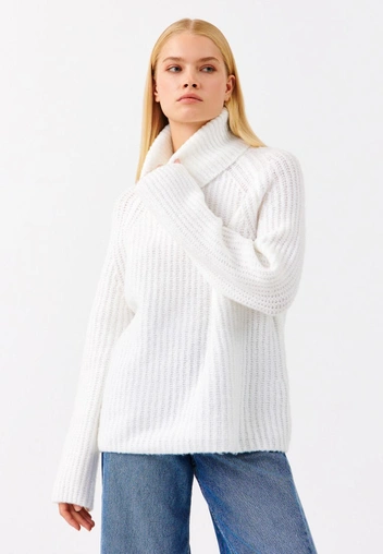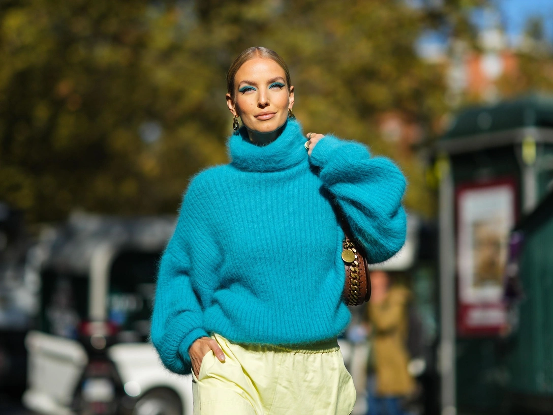 Смените свитшот на стильный женственный объемный свитер. При выборе идеальной модели обратите внимание на правильную посадку и крой: чуть спущенная линия плеч, гармоничный вырез и резинка внизу — любые детали имеют значение (читайте также: Тугая резинка и немодный декор: 5 грубых ошибок при выборе свитера, которые допускают все). Отдайте предпочтение монохромным вариантам с высоким воротом и сочетайте их с узкими джинсами, которые снова в моде.