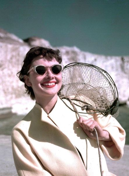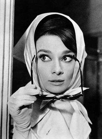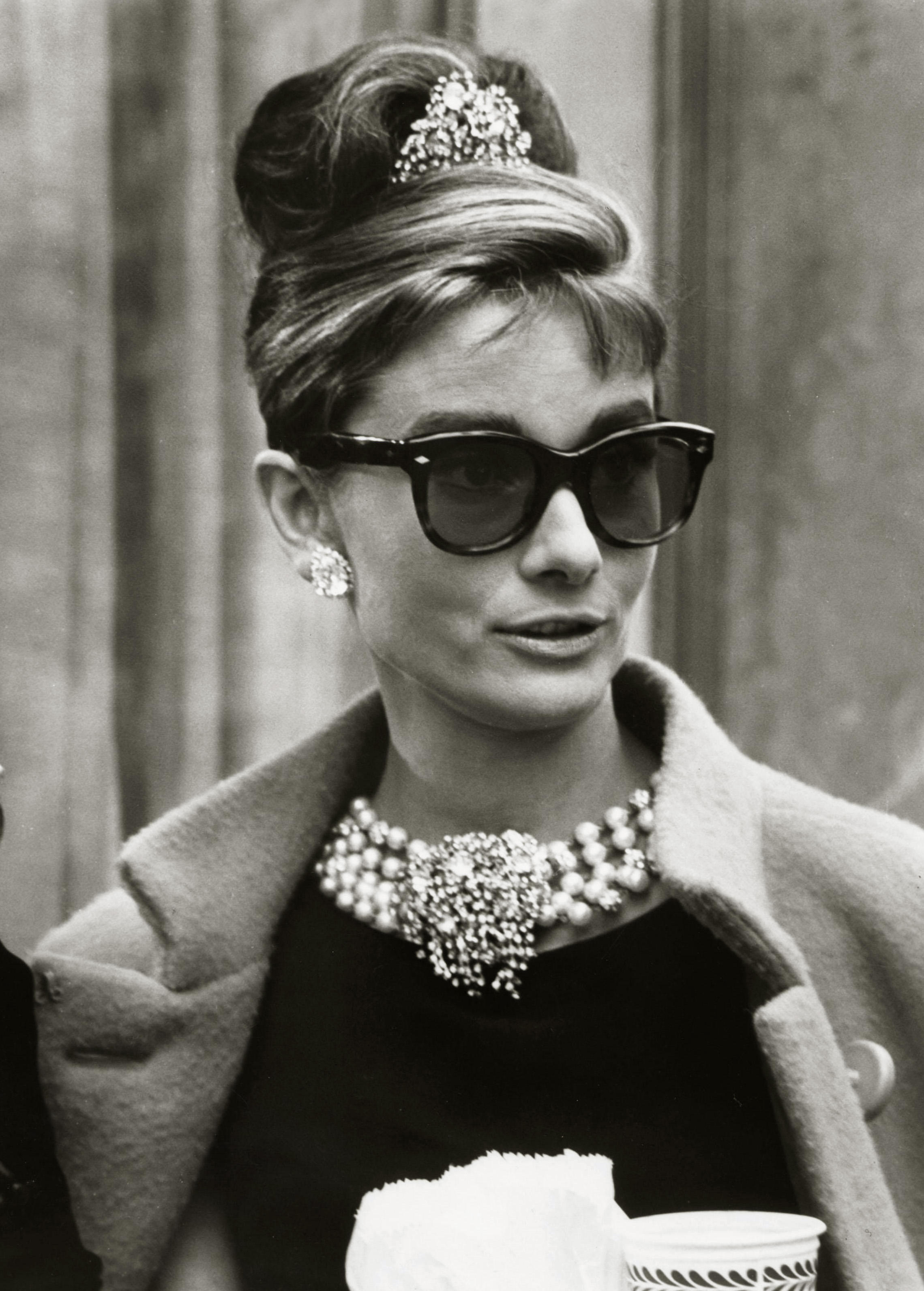 Пожалуй, нет наряда, в который Одри не могла бы вписать крупные очки. Самое интересное, что она научила нас носить этот аксессуар не только в повседневных нарядах, но и в вечернем гардеробе — идеальной иллюстрацией станут культовые сцены у бутика Tiffany. В кадре она носила солнцезащитные очки Oliver Goldsmith Manhattan в черепаховой оправе, которые моментально стали культовыми — эта форма остается актуальной спустя 70 лет. Эту же модель она предпочитала и вне работы, разбавляя их моделями cat-eye и крупными вариантами в белой оправе, которые были особенно популярными в 60-е.