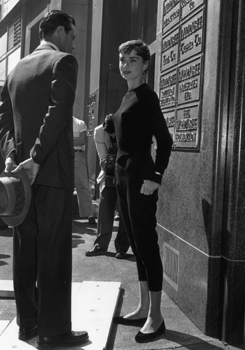 Укороченные брюки-сигареты — еще одна культовая вещь, которая стала популярной благодаря Одри Хепберн. Каноническую модель в сочетании с водолазкой и лоферами она носила в фильме «Сабрина» — это же сочетание она потом переняла и для собственного гардероба. А летом актриса обожала красочные брюки с принтом виши, которые отлично смотрелись в ансамбле с рубашками с короткими рукавами и легкими платками.