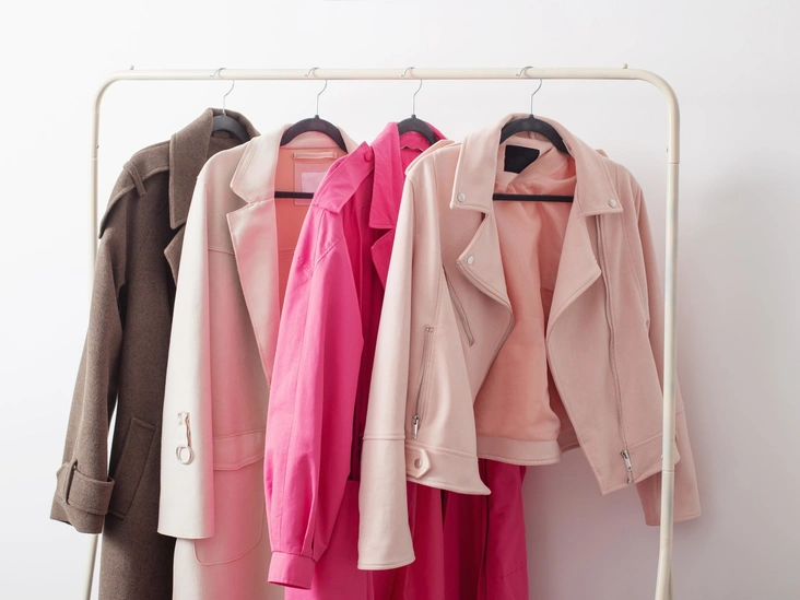 Жакеты, как правило, занимают основное место в шкафу. Это объемные предметы одежды, и если вы попытаетесь сложить их и положить в комод, это создаст складки и потенциальную угрозу повреждения структуры изделия, а еще займет большую часть пространства на полках или в ящиках. Так что блейзерам, жакетам и даже джинсовым курткам лучше висеть.