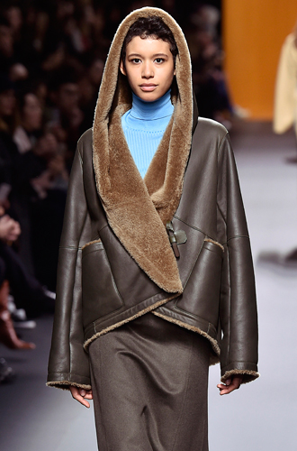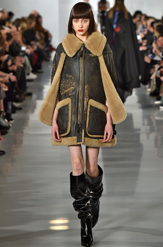 Помимо классических оттенков бежевого, теплого тауп, коричневого и светло-коричневого на подиумах стали появляться также модели в изумрудном и холодном синем цветах. Costume National считает, что истинная дубленка должна быть как будто снята с мужского плеча. Показ Paco Rabanne запомнился расклешенной курткой-пилот асимметричного покроя длины миди. А Maison Martin Margiela выпустили очаровательный гибрид дубленки и пончо с объемным воротом.