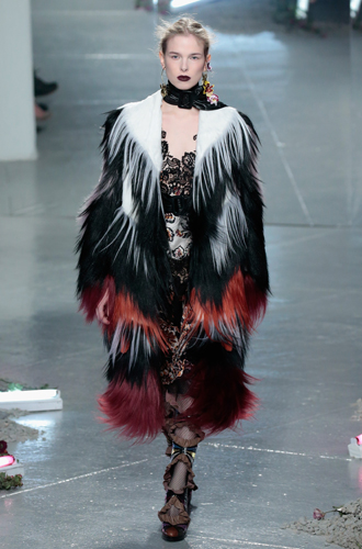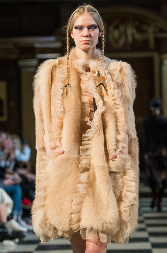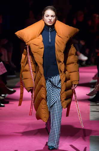 Кроме того, дизайнеры как один предпочли утонченности массив. Все представленные модели более чем воспевают объем. Но превзошла в этом деле всех, пожалуй, Marques'Almeida. Alexander McQueen являет укороченное пальто «как из сказки», расшитое в вышивке ручной гладью и декорированное нежным мехом персикового цвета. Своей коллекцией марка отдала дань сразу нескольким культовым трендам этого сезона. Iceberg же воспевает другой не менее значительный тренд – асимметричность.