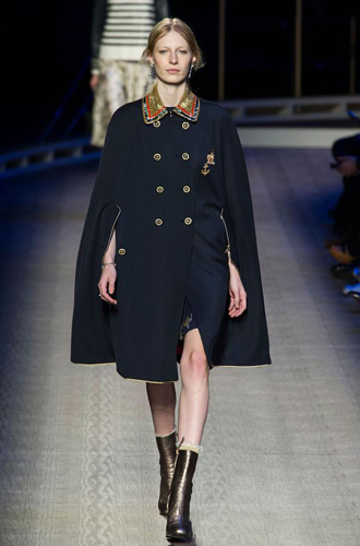 Просматривая осенне-зимние коллекции, можно найти кейпы самого разнообразного дизайна: похожие на плащи с завязками на шее, накидки с двумя прорезями, пальто-кейпы из шерсти, кожи и меха, на молнии и пуговицах, с вышивками, аппликациями и объемным декором.