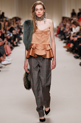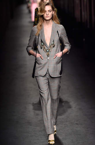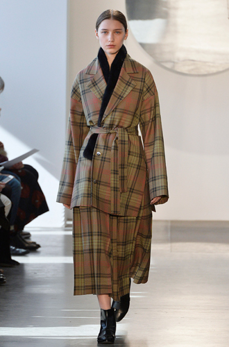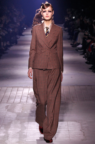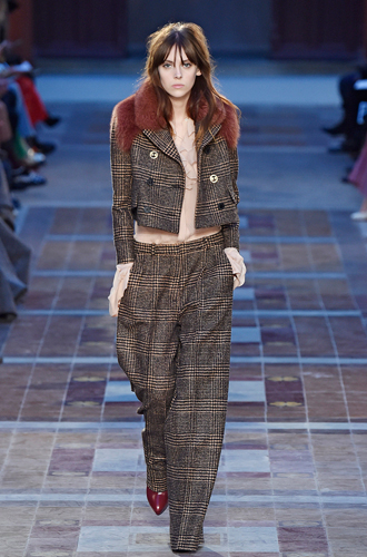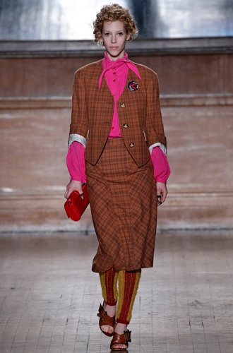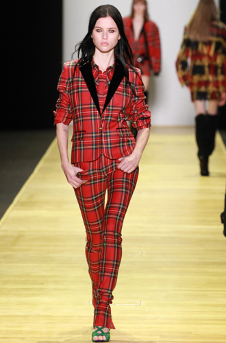 Относительно забытую красную шотландку вспоминает Barbara Bui, создавая в этом цветовом исполнении total look. Vivienne Westwood создает клетчатые костюмы в стиле 60х, а Suno располагает клетку на брючном костюме, невероятно напоминающем куда больше пальто oversize.