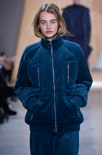 Дизайнеры советуют сочетать предметы гардероба в одной цветовой гамме, вплоть до моноцвета. Так, Lacoste представил публике бархатный синий пуховик, у Nicholas K преобладают целые монохромные образы.