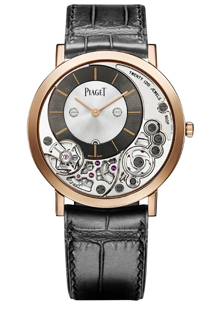 Циферблат серого цвета в технике «гильоше» или из перламутра + розовое золото + ремешок из кожи аллигатора серого цвета = новое трендовое сочетание в часах.