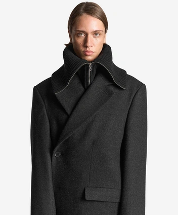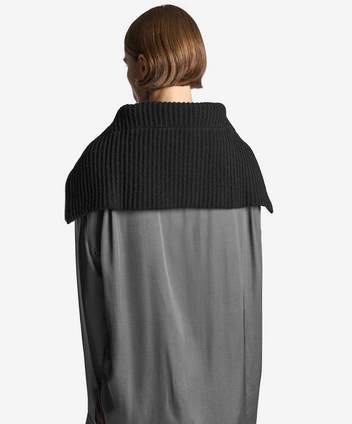Еще одна альтернатива классическому шарфу — вязаный воротник на молнии. Закрывая горло и уши, в застегнутом виде аксессуар не пропустит прохладный воздух и станет идеальным последним штрихом для пальто без воротника.
