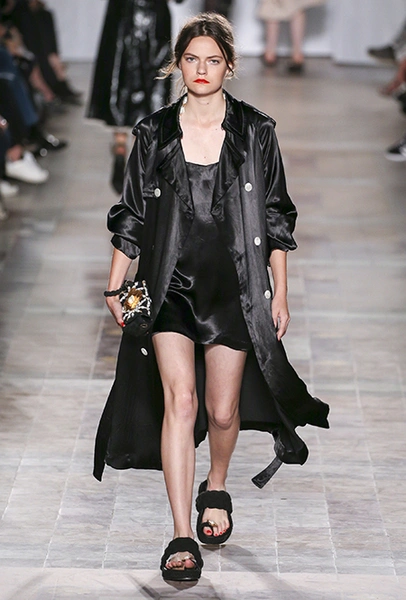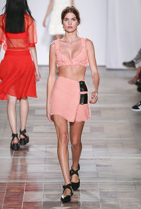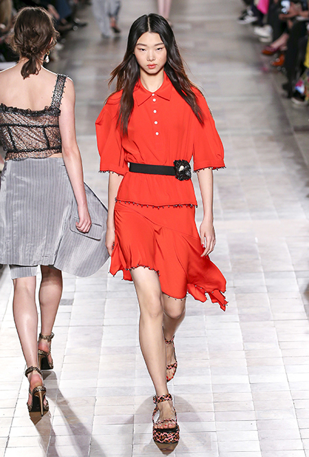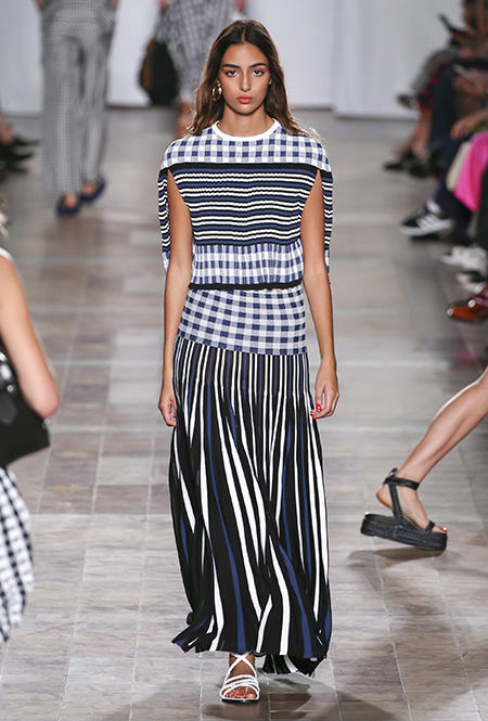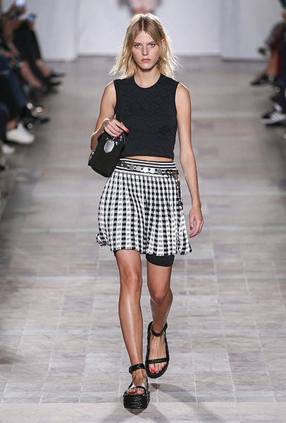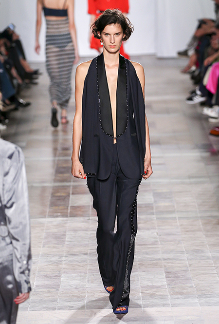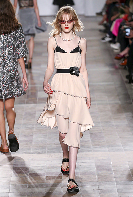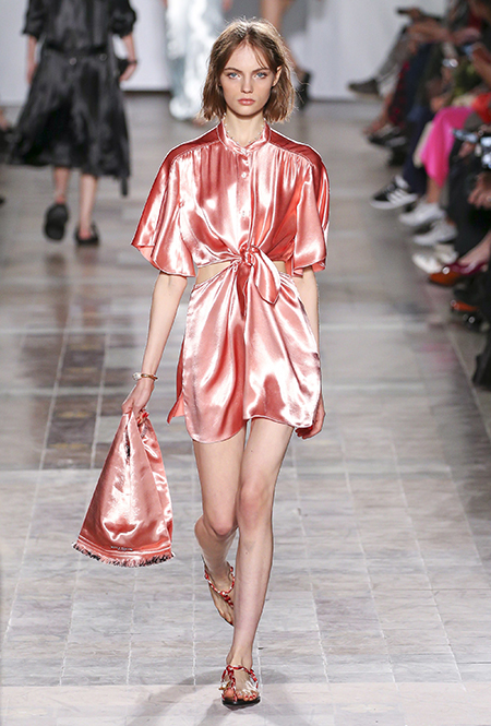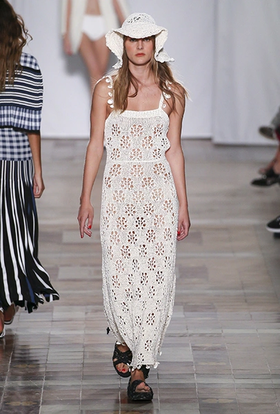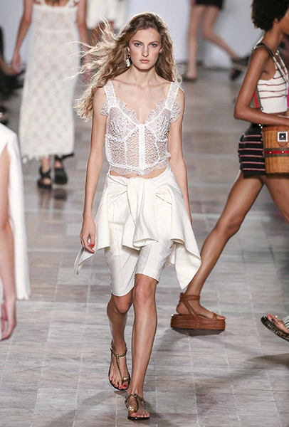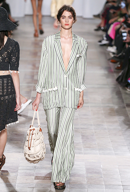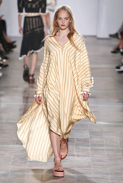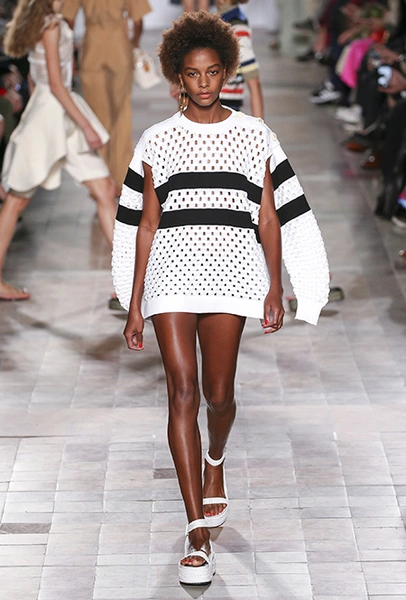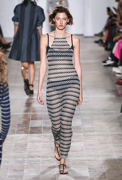В вещах из новой весенне-летней коллекция Sonia Rykiel легко представить себе молодую Брижит Бардо, которая прогуливается по пляжу неподалеку от знаменитой виллы La Madrague. Для утреннего променада она вполне могла бы выбрать короткий сарафан в косую оранжевую полоску с вырезами по бокам. Или черные полосатые мини-шорты и контрастный топ. А может, остановилась бы на длинном платье-балахоне с ассиметричным подолом и V-образным воротом. Работы Жюли де Либран для легендарного бренда, во-первых, женственны, во-вторых выглядят всегда очень «по-французски» ─ определение, которое трудно расшифровать, но каждый раз, когда вы его слышите, вы понимаете, о чем речь. Это и минимализм, и элегантность, и ирония – в общем, Брижит бы понравилось.