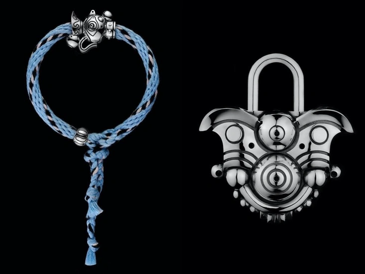 Самое узнаваемое украшение бренда — браслет-шнур, сплетенный вручную по древней японской технике кумихимо. В бусине с логотипом в виде буквы U зашифрован символ бесконечности. А еще к браслету можно выбрать амулет: шестилучевую звезду Давида, символ дерева или свой знак зодиака. Кроме браслетов, U Jewels выпускают серьги-амулеты, запонки в виде солнца и луны (одна золотая, вторая серебряная), а также замки-обереги для сумок Hermès. Последние вдохновлены собачками Фу, или «небесными львами Будды» — мощным талисманом в культуре Древнего Китая.