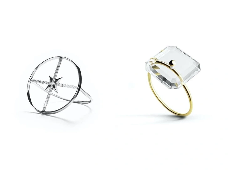 «Украшения не кричат о себе — они шепчут», — говорится на сайте ювелирного бренда Миши Барышникова, и с этим не поспоришь. Камни на тонких, едва заметных кольцах здесь не оправлены, а точнее сказать, спрятаны в золото. Есть кольца, где камень или тайная надпись прячутся вообще внутри, и доступ к ним есть только у владельца украшения. При разработке коллекций команда Anima обращается к точным наукам. Например, кольцо «Герон» названо в честь Герона Александрийского — математика, механика и величайшего инженера. Хрусталь гранили специальным образом, чтобы свет, попадая на украшение, распадался на спектры. А кольцо «Звезда» представляет собой одновременно и звезду, и компас — это один из самых сложных объектов Anima в плане разработки и тонкости мельчайших деталей.