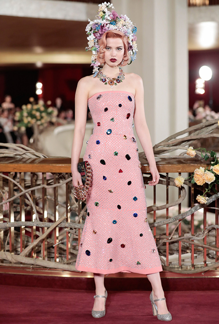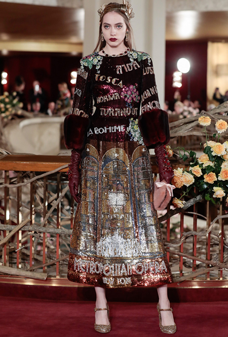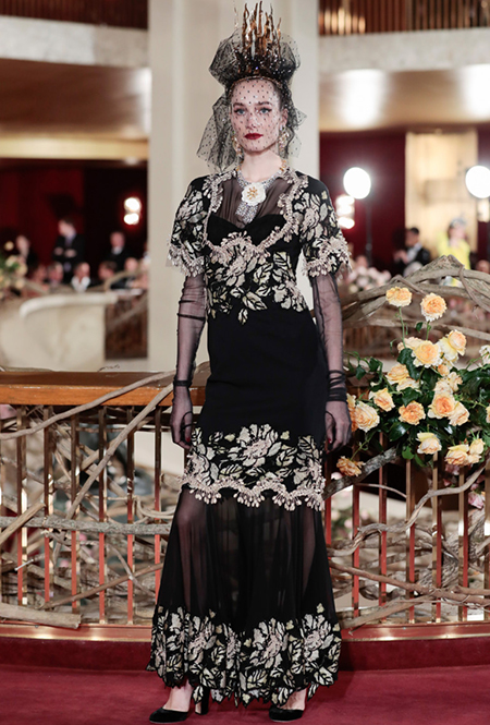 Вслед за аукционом высокого ювелирного искусства, где главной звездой вечера стала Сара Джессика Паркер, и показом мужской Alta Sartoria, Доменико Дольче и Стефано Габбана представили коллекцию Alta Moda — собственный аналог кутюрных коллекций парижских Домов моды. Местом показа была выбрана нью-йоркская Метрополитен-опера, где под звуки арий модели в пышных и не очень платьях буквально выплывали на знаменитую широкую лестницу.
