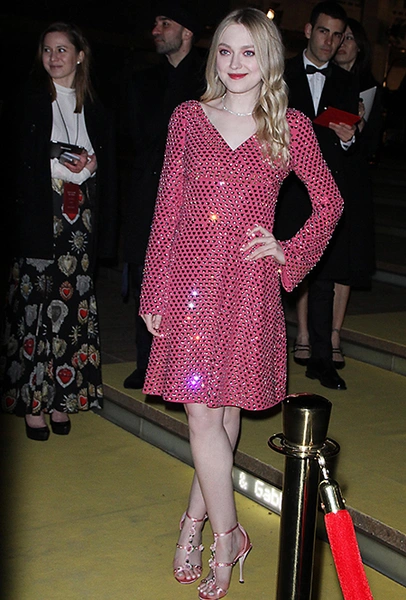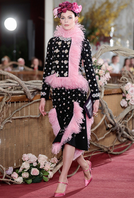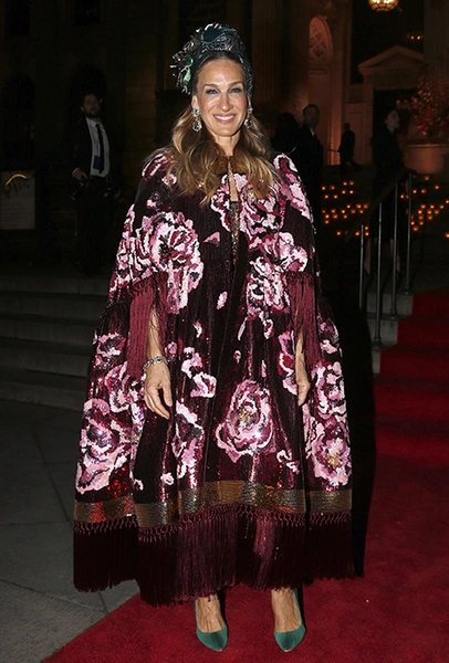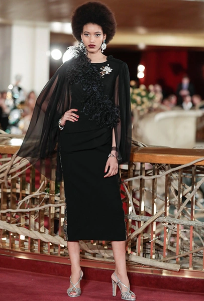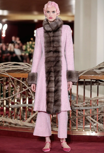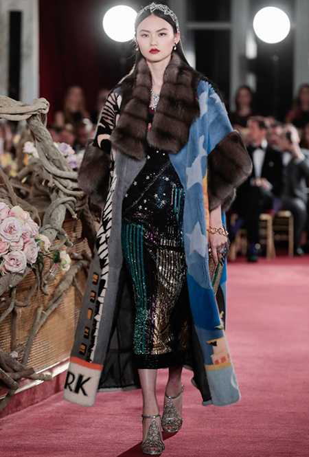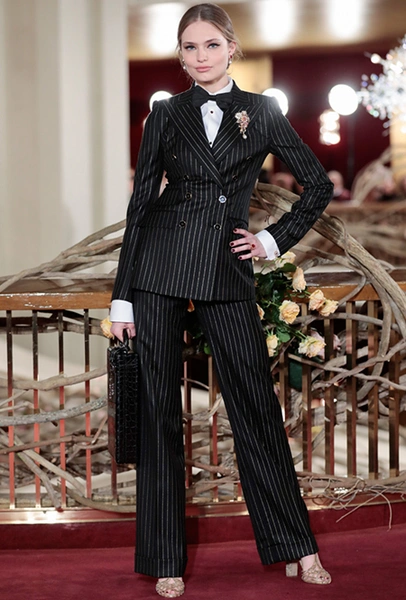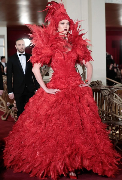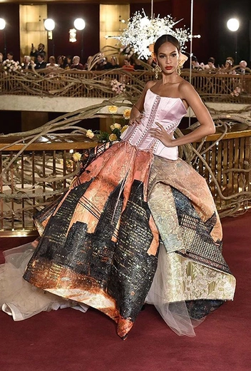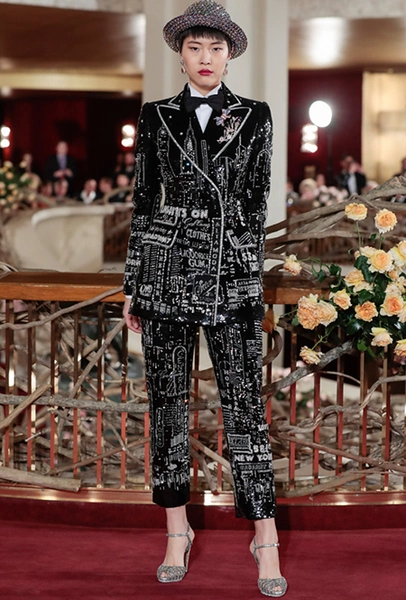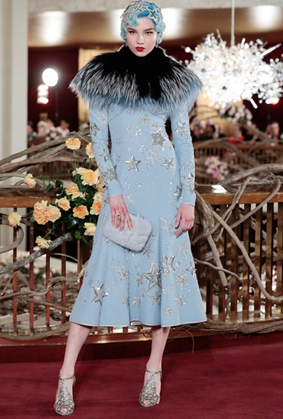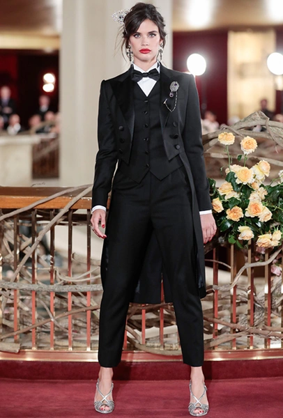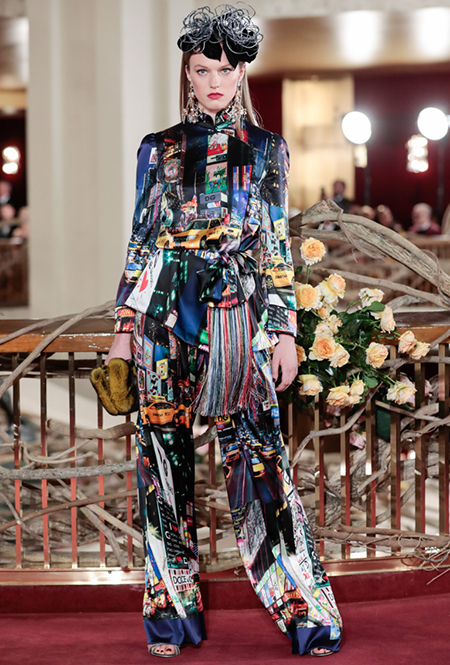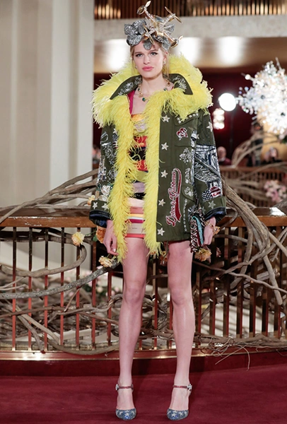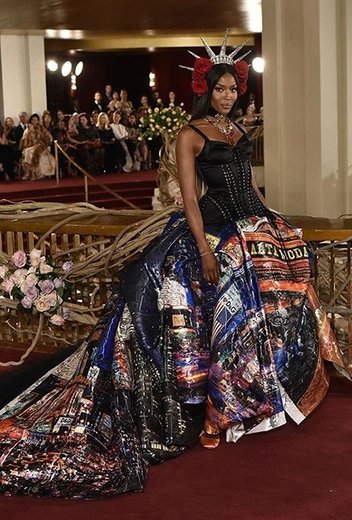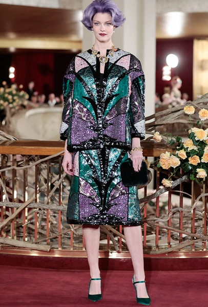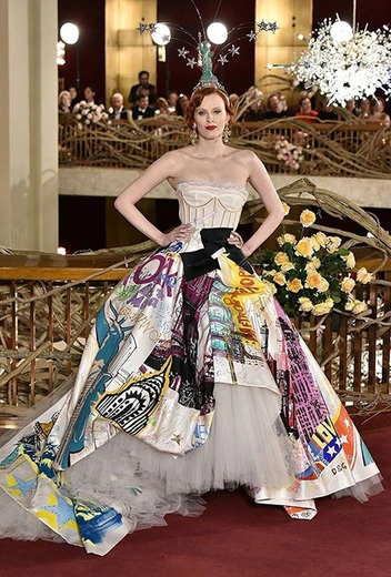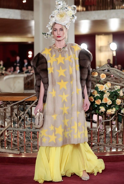 Что до коллекции, то в ней все то, за что клиенты обожают творчество Доменико и Стефано: длинные платья, обилие сверкающих пайеток, костюмы со смокингами, длинная бахрома, пышные перья, разноцветные аппликации и, конечно же, натуральный мех. Нью-йоркскую тему коллекции дизайнеры подали весьма прямолинейно, изобразив на платьях самые знаменитые виды Большого яблока: Эмпайер-стейт-билдинг, сияющие плазмы Таймс-сквер, Бруклинский мост, сама Метрополитен-опера и, конечно же, символ американской демократии — статуя Свободы.