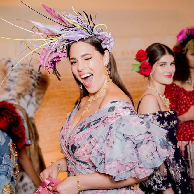 Главными звездами подиума в этот вечер стали такие разные и прекрасные Наоми Кэмпбелл, Стелла Максвелл, Джоан Смоллс, Эшли Грэм, Роми Стрейд, Сара Сампайо и, конечно же, Женя Катава — белорусская модель, ставшая музой итальянского бренда.