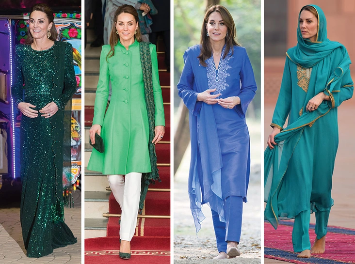 Кроме того, эта официальная поездка особенно запомнилась поклонникам королевской четы благодаря нарядам, которые выбрала герцогиня Кембриджская. Отдавая дань традициям Пакистана, супруга принца Уильяма отказалась от привычного гардероба в пользу платьев в пол, кафтанов и традиционных пакистанских костюмов от местных дизайнеров. Также многие образы Кейт Миддлтон напомнили обозревателям наряды, которые выбирала принцесса Уэльская Диана во время своих визитов в Пакистан.