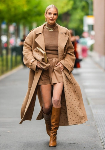Если вы предпочитаете лаконичные и спокойные цветовые решения, присмотритесь к графитовым и коричневым колготкам в различных исполнениях: прозрачность, плотность, ажурность. Серые колготки также отлично сочетаются с черной и контрастной обувью. Колготки коричневого или близких к нему оттенков добавят в образ тепла и уюта, особенно если они из кашемира. Интегрируйте такие колготки в монохромные образы — так образ будет завершенным и при этом выглядит дорого.
