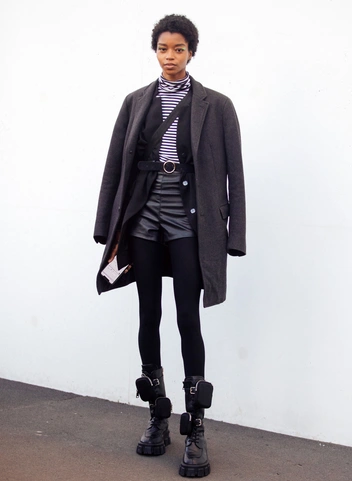 Стандартный и беспроигрышный — черные колготки. Существует различная вариативность в данном цветовом решении от насыщенности оттенка до его прозрачности, поэтому очень важно правильно внедрить их в образ. Беспроигрышным будет монолук, когда колготки сочетаются с черной обувью, темными юбкой или шортами. Количество den зависит от температуры, в случае холодных морозных дней лучше использовать от 100 den и больше (читайте также: Как правильно выбирать колготки). Аккуратно комбинируйте черные колготки со светлой обувью и светлыми элементами одежды: это достаточно смелое решение, к тому же, может заметно укорачивать рост.