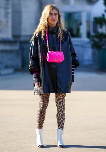 Присмотритесь также к анималистичным принтам: они добавят градус экстравагантности и нарядности в ваш осенне-зимний образ. Кстати, такие колготки хорошо комбинируются с геометричным принтом.