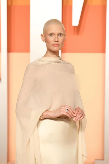 Известная модель Бьянка Балти продолжает бороться с онкологией, однако это не мешает ей становиться одной из главных звезд на красных дорожках. В этот раз она покоряла публику в нежном образе Fendi из коллекции Haute Couture 2023. Поверх кремовой шелковой юбки девушка надела изящную блузу из прозрачной ткани. Украсили минималистичный образ аксессуары Bvlgari — массивный перстень на безымянном пальце и подходящий по стилю браслет (читайте также: Честная история Бьянки Балти: как модель с самыми голубыми глазами стала примером всем, кто отчаялся).