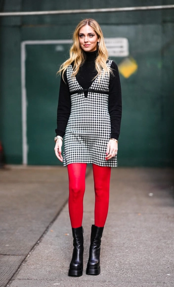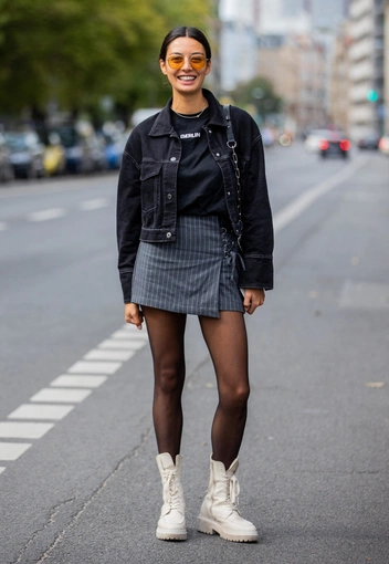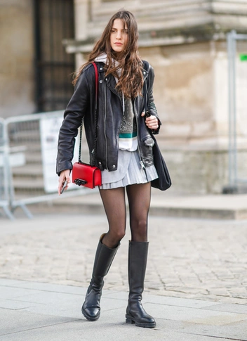 Высокие сапоги мы носим осенью, зимой и весной, поэтому в таком образе колготы неизбежны, ведь за окном, как правило, дожди, ветра и морозы. К темным ботфортам или сапогам-трубам подбирайте модели черного цвета, так как они стройнят ноги и не создают блестящего эффекта и загара на коже (читайте также: Выглядит дешево: 5 самых нелепых колготок, от которых нужно избавиться прямо сейчас). Однако если вы надеваете обувь в бежевых или белоснежных оттенках, при выборе колгот стоит быть осторожными: они должны быть телесного цвета без дополнительного сияния, иначе вы рискуете превратить стильный выход в безвкусный.