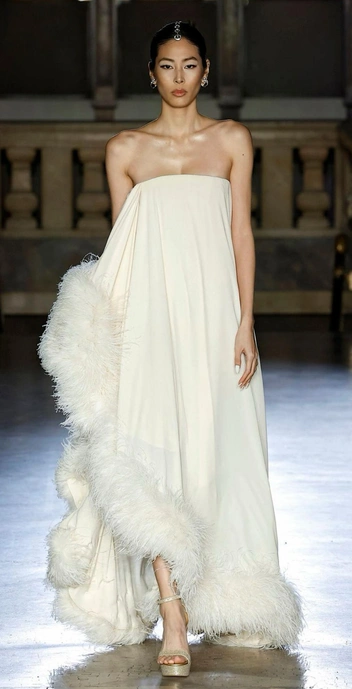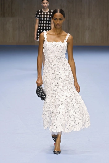 Босоножки — это обувь, которая никогда не пропадает с показов, а просто видоизменяется. В сезоне SS/25 дизайнеры предлагают носить варианты с тонкими изящными ремешками, овевающими ногу. Это работающий вариант не только для летней прогулки, но и для свадьбы.