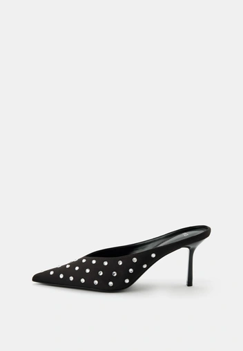 Еще один вариант для теплой погоды — это мюли на каблуке. Они вошли в нашу жизнь в 90-е (вспомним гардероб Кэрри Бредшоу, где были только мюли) и получили новую жизнь летом 2024 года. Такие дополнят свадебное платье-футляр длины миди или брючный костюм, если хотите отойти от традиций.