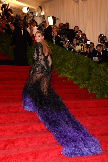 Бейонсе — одна из лидеров по количеству «голых выходов». И, конечно, какой бы ни была тема традиционного бала Met Gala, с большой долей вероятности на ковровую дорожку мероприятия певица отправится в провокационном наряде. Так было и в 2012 году, когда звезда появилась в черно-фиолетовом платье Givenchy с перьями. Правда, безупречный выход дивы был на грани срыва.