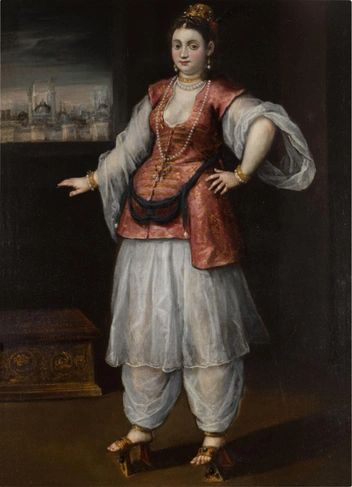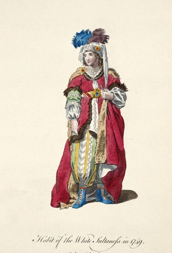Сам наряд госпожи состоял из прямого платья без акцента на талии, или широких брюк-шароваров (из-за этого султанш на портретах нередко путали с мужчинами). Однако платьем дело не ограничивалось — девушки надевали несколько накидок, иногда подвязывая их поясом. То был способ скрыть фигуру в соответствии с традициями, а еще показать свой достаток — чем больше тканей было на женщине, тем богаче она была.