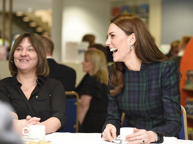 Непоколебимая верность этим правилам сделала многие образы Кэтрин, как минимум, неинтригующими. Взять хотя бы ее пальто от Alexander McQueen, в котором она накануне прибыла вместе с Уильямом в шотландский город Данди. Ход, конечно же, весьма очевидный – впрочем, не стоит винить в этом только Кэтрин, ведь к этому же приему в разное время прибегали чуть ли не все женщины из королевской семьи. Даже модные «бунтарки» Диана и Меган не сопротивлялись соблазну связать принт на своей одежде с местом, в которое они направлялись.