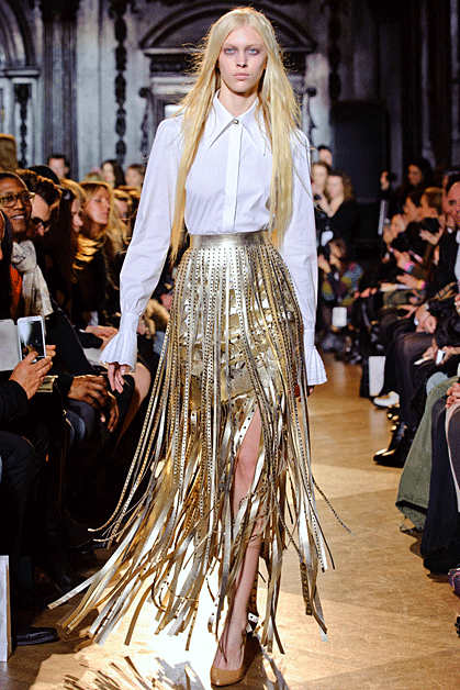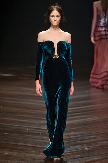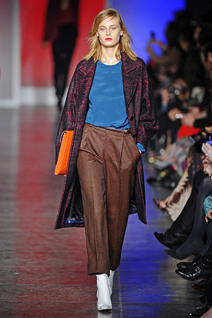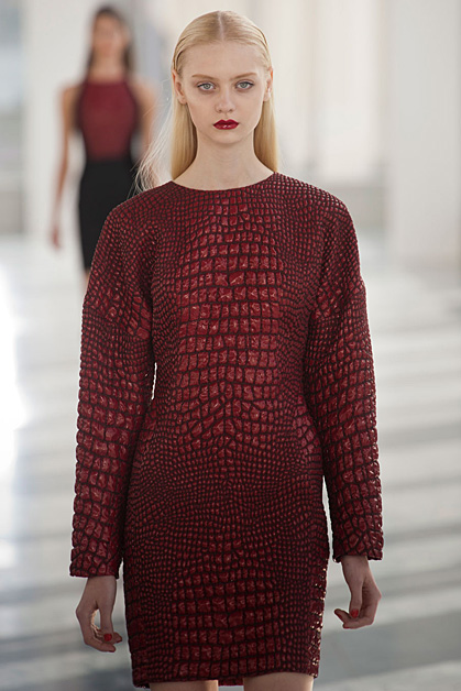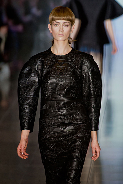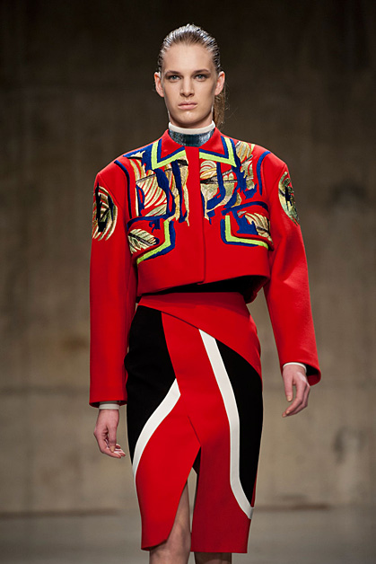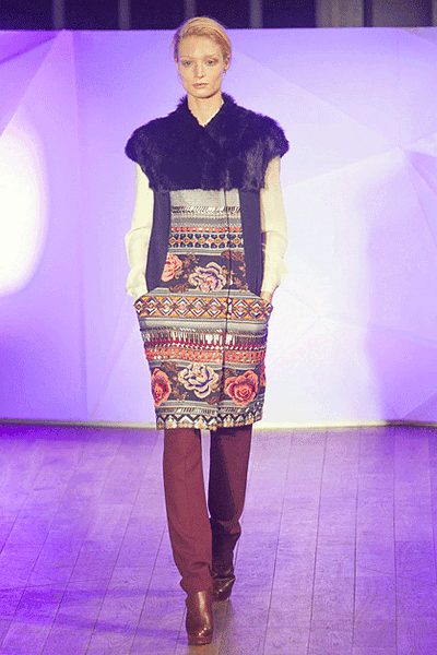 Кожаные платья со сложной набивкой Mary Katrantzou, камуфляжная куртка-косуха Christopher Kane или костюм с фактурой рептилии Antonio Berardi – агрессивная сексуальность по-прежнему на пике. Черно-белые авангардные рисунки, платья-зебры, марокканская палитра, тонкое черное кружево в сочетании с длинным мехом – Том Форд (Tom Ford) настойчиво навязывает нам этнику. Дизайнер видит следующую зиму ревущей, интенсивной и своенравной, как сама Африка. Англичанин Мэттью Уильямсон (Matthew Willamson) приветствует лаконичную самобытность северных народов в виде цветочных орнаментов на платьях и пальто. Сочные сюрреалистичные принты и динамику портретов Эль Греко смешивает на тканях дуэт Piter Pilotto.