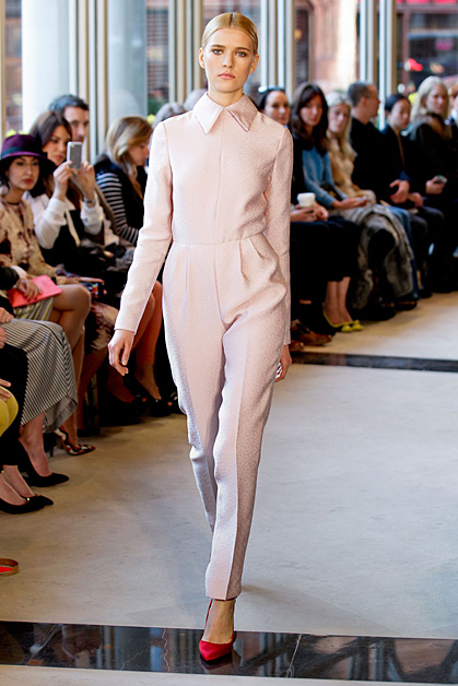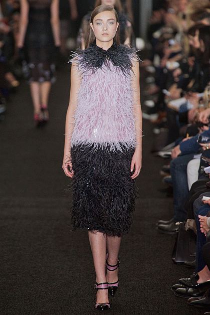 Чувственная романтика бренда Erdem – это cкупая черно-розовая палитра и платья-миди в стиле Золотого Голливуда. Хищная натура амазонок проявилась в перфорированной металлическими вставками юбке в сочетании с простой классической рубашкой на показе Джайлса Дикона (Giles Deacon).