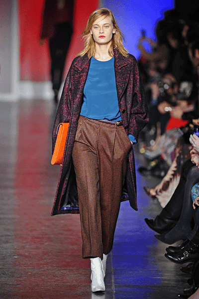 Коллекция сэра Пола Смита (Paul Smith), навеянная дерзкими 1980-ми, тоже пропитана красками. Мужские однобортные пальто из тонкой английской шерсти вкупе с широкими брюками-дудочками и цветными топами – универсальный наряд в холодную зиму-2014. А вот Burberry собирается растопить лед нежностью. Инфальтильные сердца на блузках и платьях появились там не случайно.