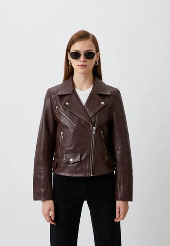 Кожаная куртка приталенного кроя с прямым замком