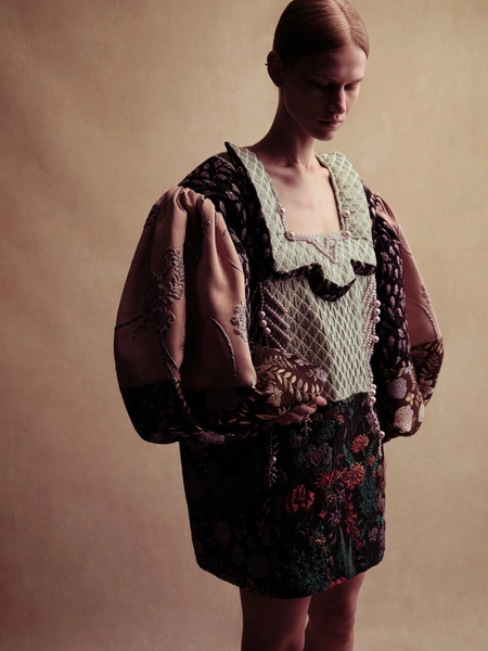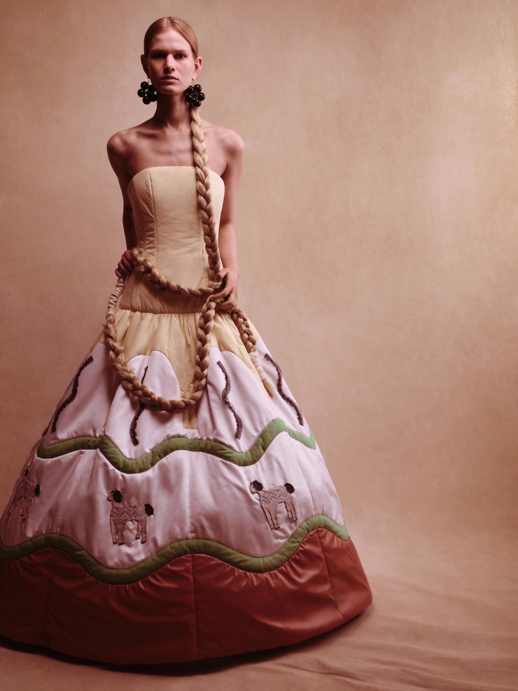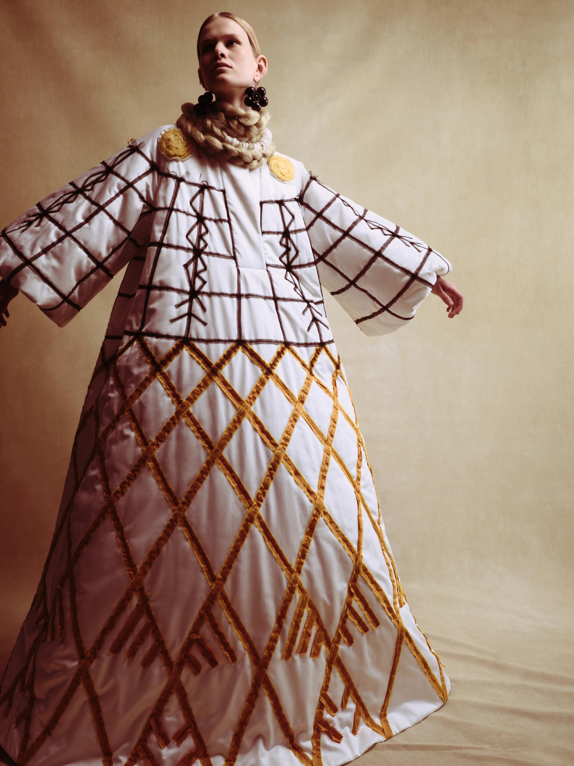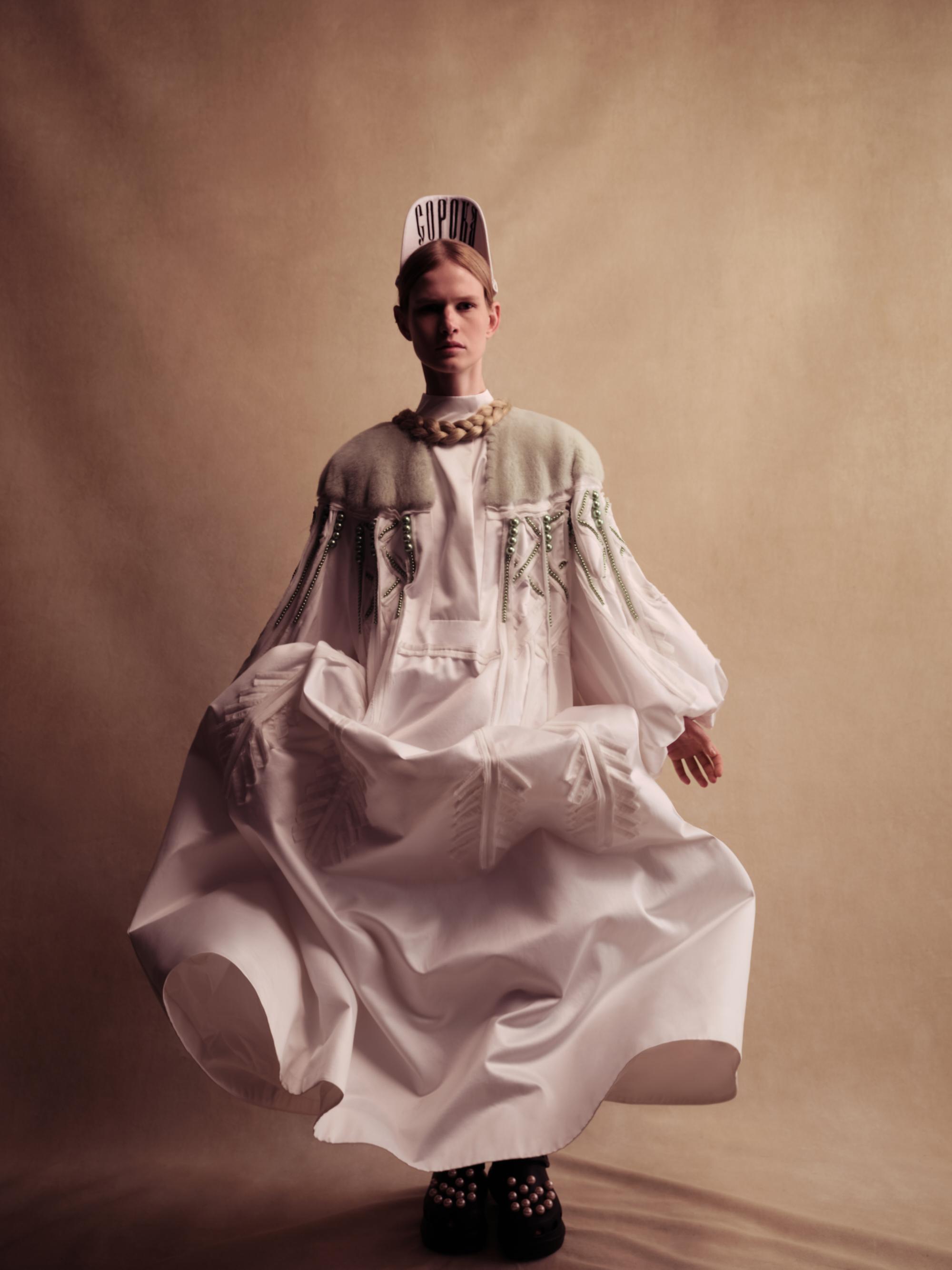 Бренд Alena Akhmadullina представил коллекцию «Белогорье», вдохновленную народно-художественными промыслами Белгородской области. Уже более 20 лет бренд создает коллекции, основанные на русских культурных кодах. В этой линии фокус внимания на принте «черноузорная вышивка» и гротескных формах силуэтов коллекции, которые отсылают к старооскольской глиняной игрушке.