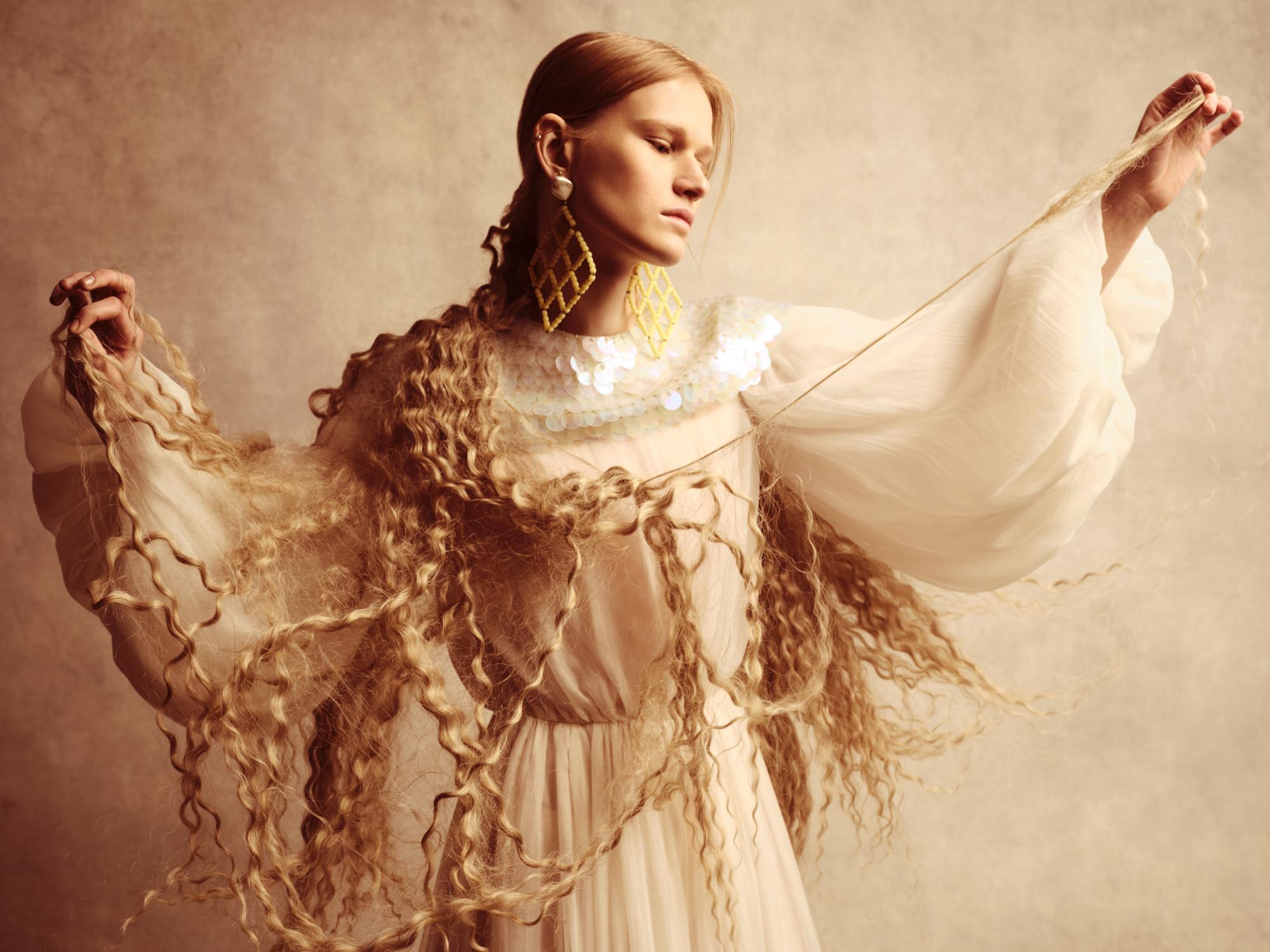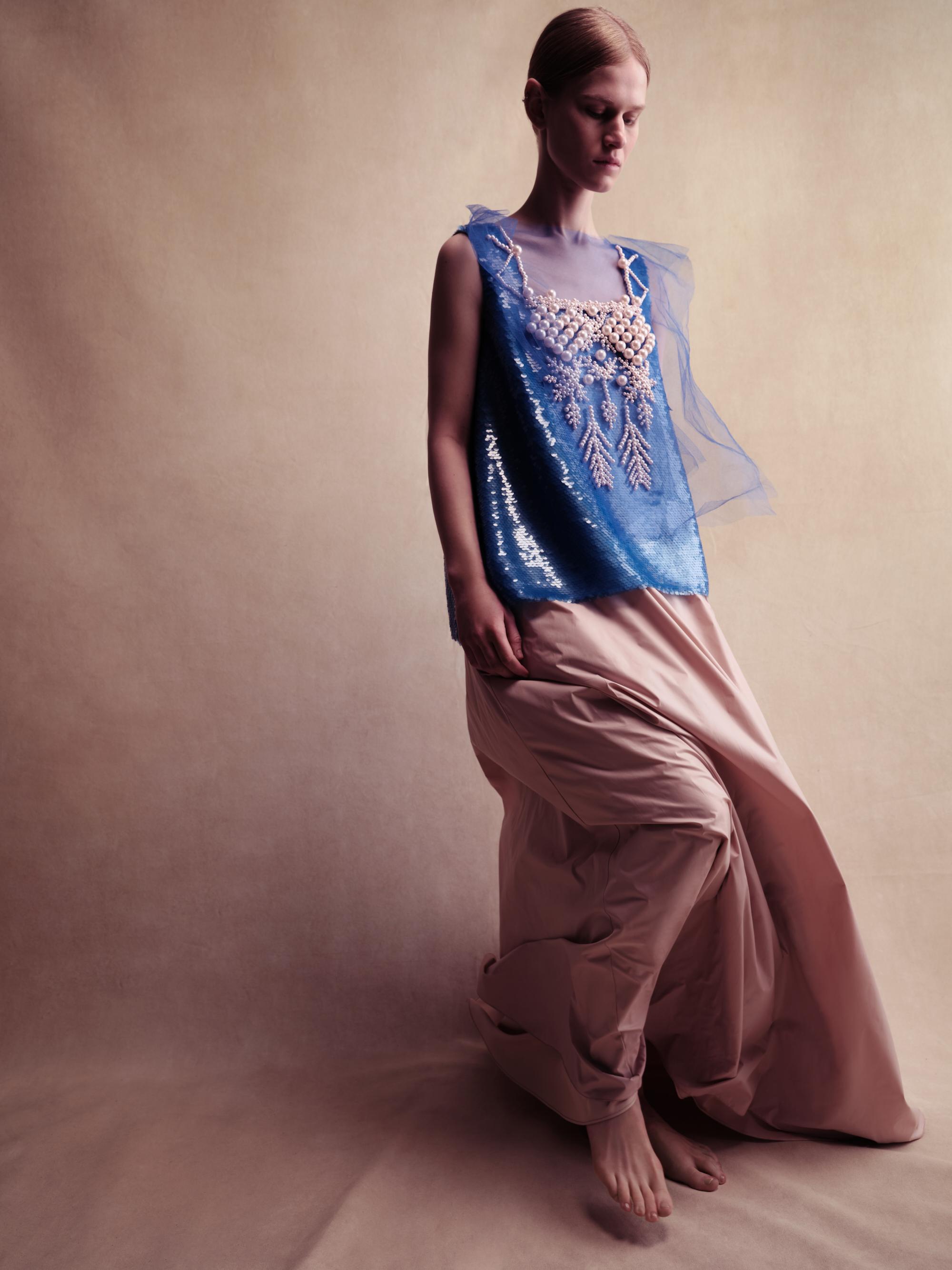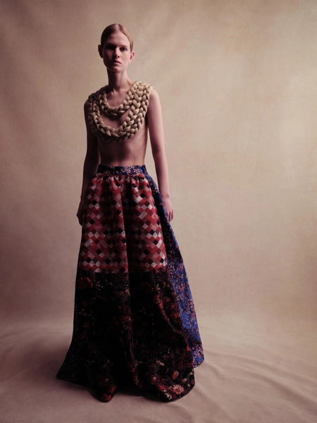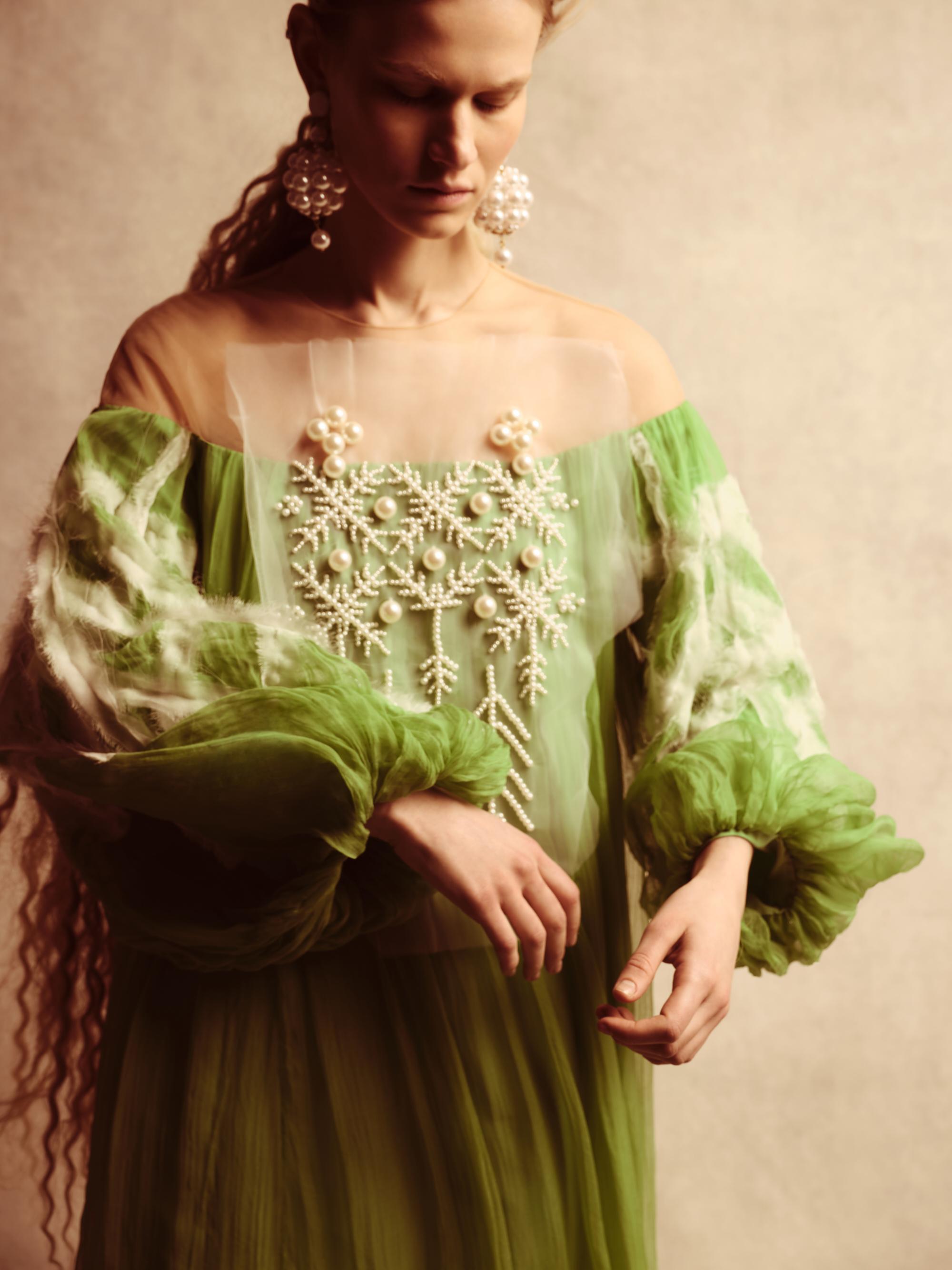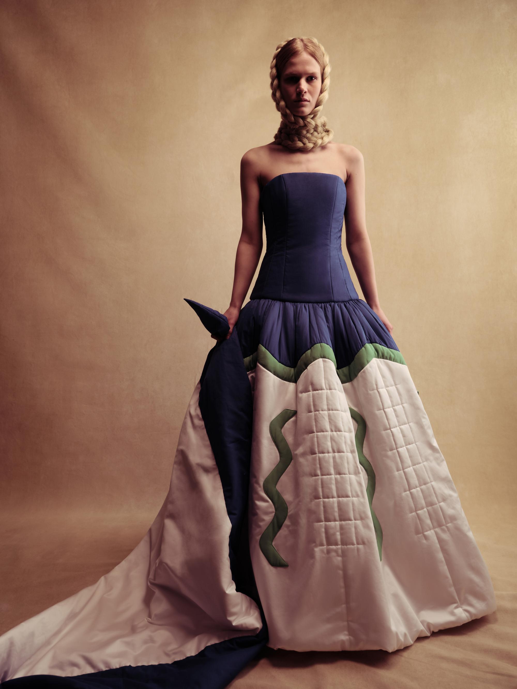 Бренд Alena Akhmadullina представил коллекцию «Белогорье», вдохновленную народно-художественными промыслами Белгородской области. Уже более 20 лет бренд создает коллекции, основанные на русских культурных кодах. В этой линии фокус внимания на принте «черноузорная вышивка» и гротескных формах силуэтов коллекции, которые отсылают к старооскольской глиняной игрушке.