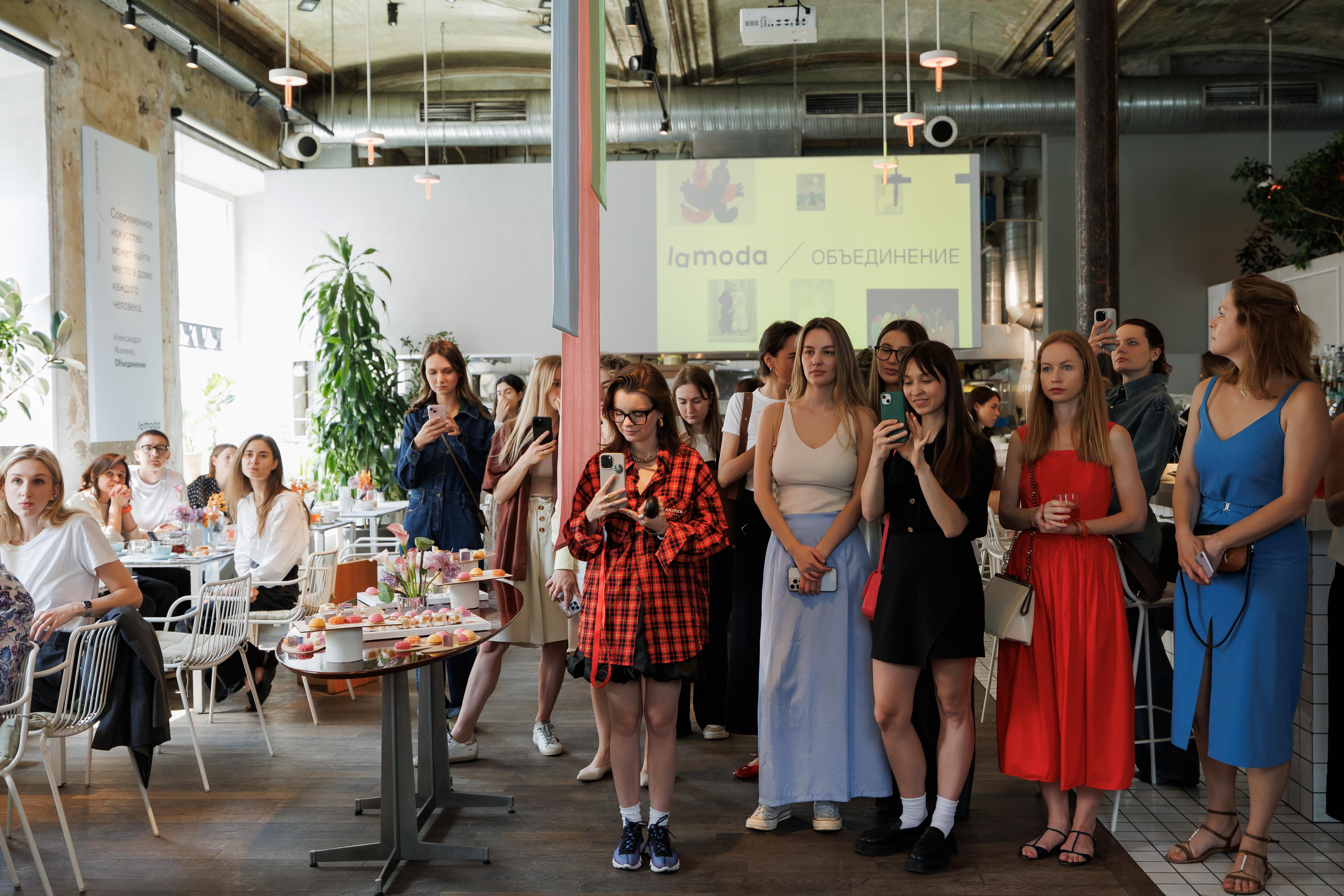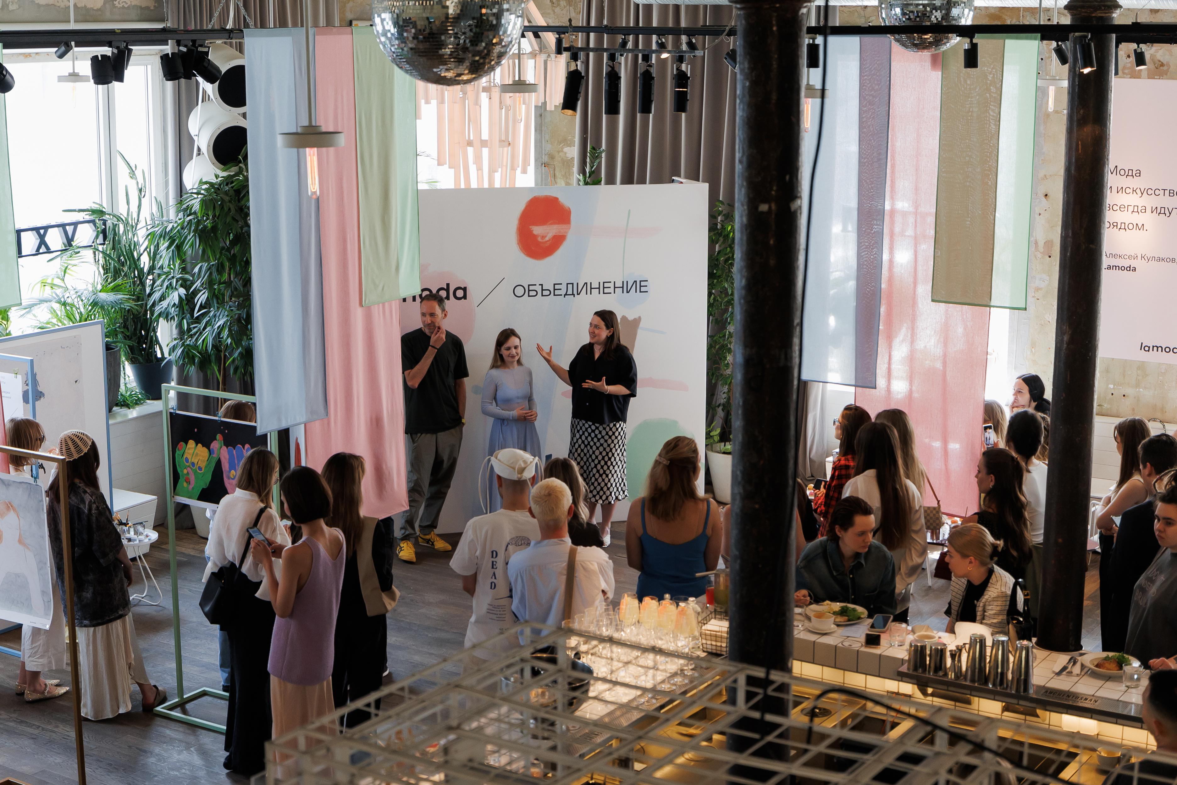 29 мая в пространстве «Дом культур» Lamoda запустила серию арт-коллабораций «Пересечения». Для первой серии работ выбрали трех художников, непохожих друг на друга, но объединенных стремлением к чистоте высказываний. Ritul почувствовала тему пересечений как прикосновения, поэтому она обнималась, мирилась, пересекалась и объединялась на бумаге с красками. Александра смогла передать идею проекта через неочевидную связь любимого предмета гардероба — платья с открытой спиной и искусства. Дима Жуков через холст раскрыл тему притяжения противоположных энергий. Кураторским подбором работ занималась основательница онлайн-галереи Анна Мерман.