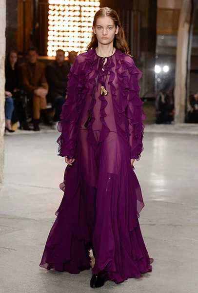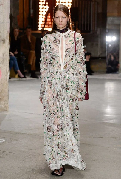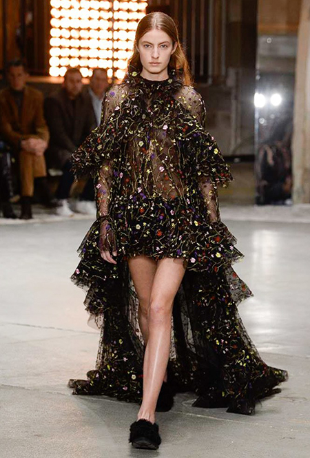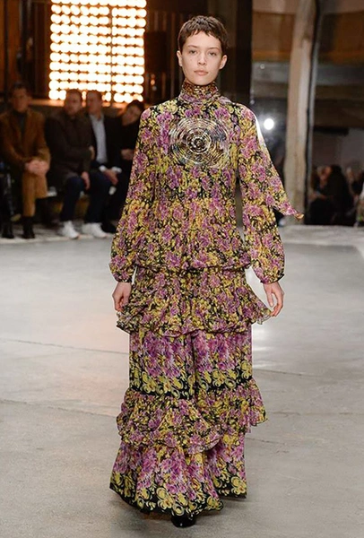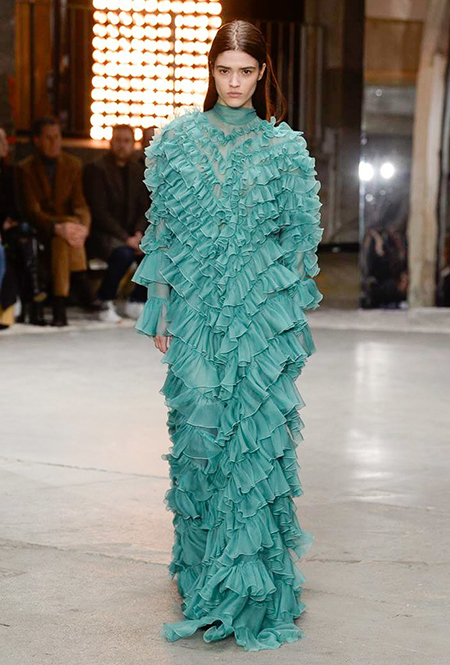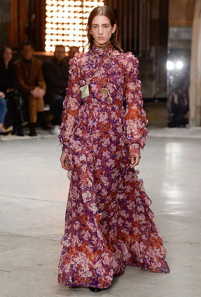 Нет, разумеется, в новом сезоне у Валли тоже есть те самые «сказочные» платья. С мелким цветочным принтом и однотонные, украшенные басками и этажами рюшей – большинство из них дизайнер приберег на конец шоу – видимо, чтобы совсем не разочаровать тех, кто пришел на показ, чтобы усладить свой взор «нарядами для фей».