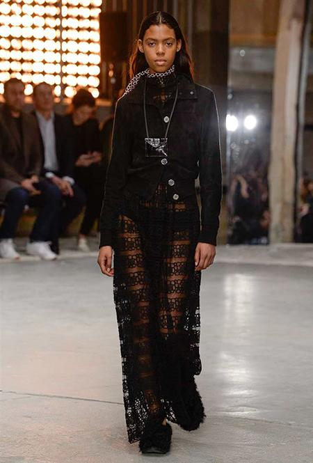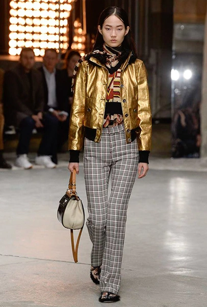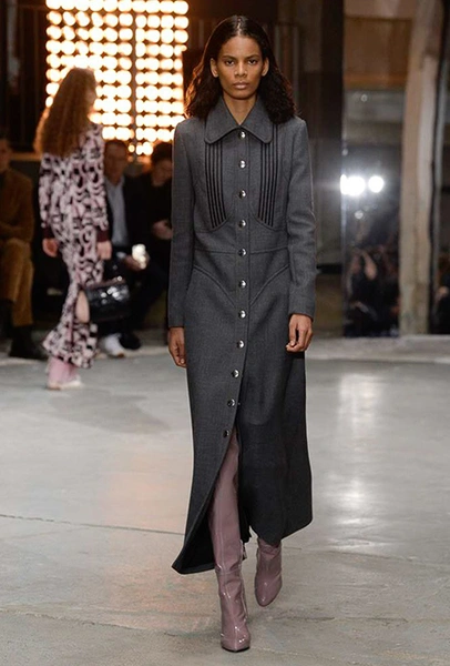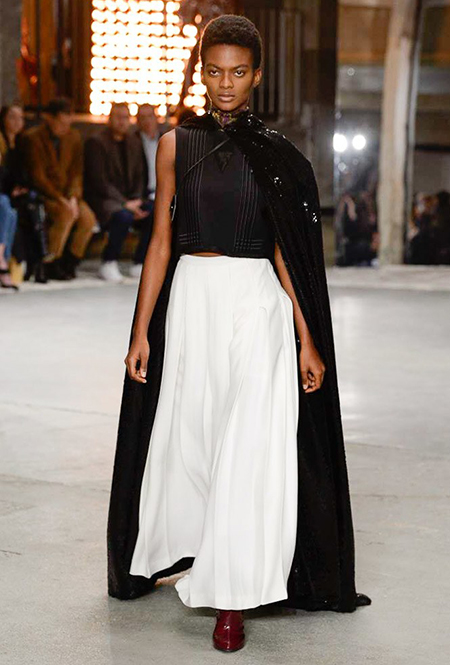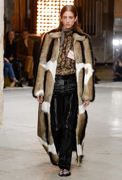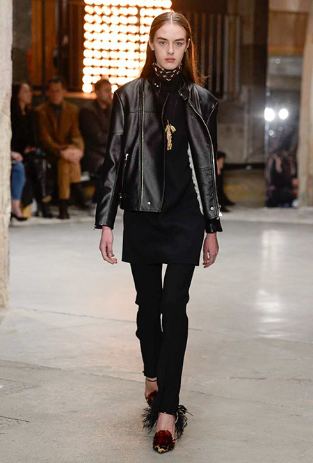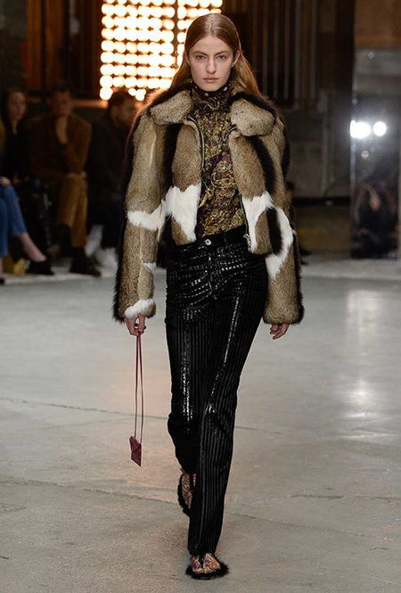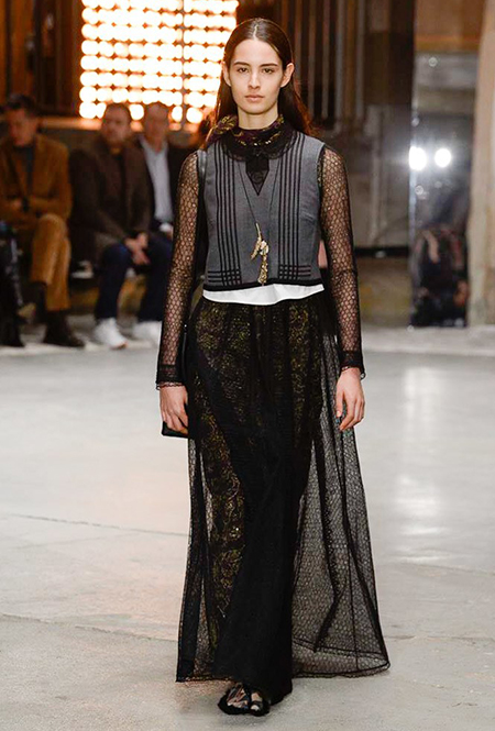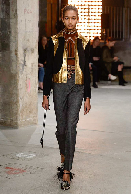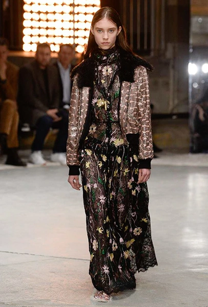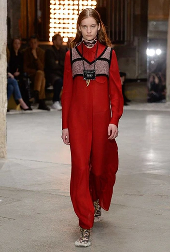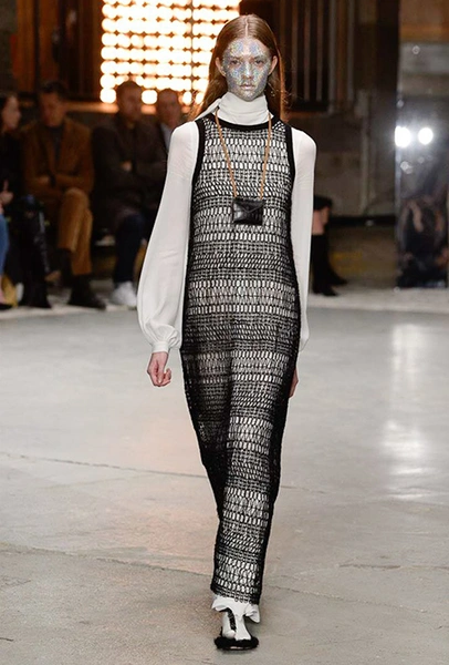 Но началось все с денима (из него сшит минималистичный комбинезон), укороченных меховых и кожаных курток. Есть в начале и одно, вроде бы, вечернее платье, но у него непривычный для Валли графичный крой, а сверху надета короткая трикотажная жилетка, которая мгновенно делает образ, скорее, богемно-повседневным, чем праздничным. Эти жилетки вообще одна из самых любопытных деталей показа.