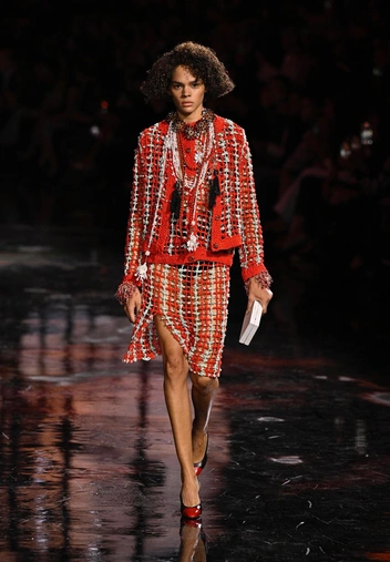 В Chanel за красным оттенком и жемчугом угадываются те же коды — видимость без эпатажа, которую отныне пропогандирует Матье Блази (читайте также: Что мы знаем про Бхавиту Мандаву — новую Chanel girl и музу Матье Блази).