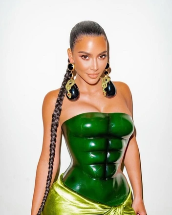 На одном творении Jean Paul Gaultier Ким, конечно, не остановилась и решила обратиться к другому кутюрному бренду, который был незаслуженно обделен звездным вниманием — Schiaparelli. В этом необычном изумрудном наряде с кубиками пресса звезда предстала в Рождество и подписала фото «Гринч и Санта», однако пользователи интернета моментально окрестили образ данью уважения Халку или одной из черепашек-ниндзя. Несмотря на то, что далеко не все оценили модный выбор Ким, звезда показала, что умеет смеяться над собой и привлекла много внимания к легендарному французскому Дому и его креативному директору Дэниелу Розберри.