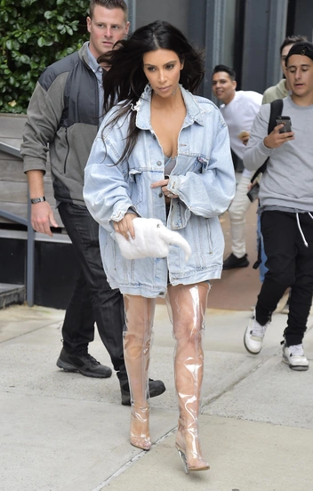 Сейчас всевозможные вариации неудобной обуви (а особенно той, которая предательски оставляет испарину на фотографиях), мы относимся довольно скептически. Но еще пять-восемь лет назад Ким не пасовала перед любыми сложностями и легко носила самые, которые на другой звезде представить сложно. Интересно, что этот выход в прозрачном белье La Perla, которое она с гордостью демонстрировала на многих фото папарацци, в то время спровоцировал громкий тренд на схожие ансамбли.