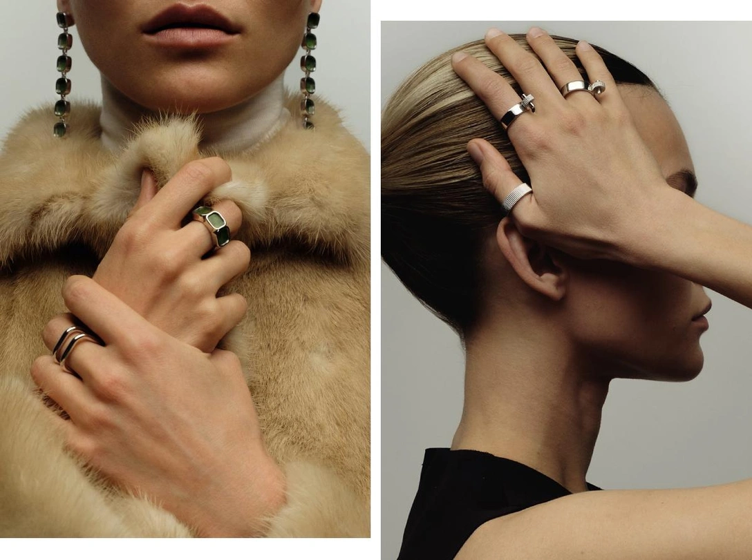 Архитекторы-модернисты любили, что называется, «обнажать» здания. Скелет сооружения становился его декоративным элементом, и архитекторы видели в этом честность и правдивое отражение конструкции. Именно из этого элемента модернистской эстетики у основателя бренда Вани Тенграна родилась идея фактуры ребристых колец. Каждая их грань красиво преломляет цвет и словно искрится.