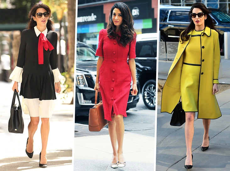 Те, кто ежедневно облачается только в пресные черные и серые образы, лишают себя огромных возможностей дресс-кода. Например, в ярком морковном наряде легко можно посетить заседание суда — и при этом выглядеть сдержанно и неброско. Сама Амаль нередко демонстрирует яркие тотал-луки в единой гамме, и согласитесь: такие простые ансамбли экономят время на сборы по утрам и крайне помогают в период горящих дедлайнов. Активный цвет и так привлекает к себе много внимания, поэтому думать о правильном сочетании фактур, дополнительных акцентах в образе или подолгу подбирать аксессуары точно не придется.