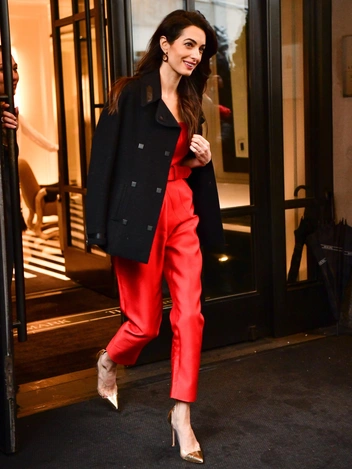Кроме того, в ее арсенале есть черный костюм с широкими брюками и укороченным жакетом. К этой паре точно стоит присмотреться: дизайнеры то и дело демонстрируют разные вариации костюмов — то с жакетом-баром в лучших канонах Кристиана Диора, то оверсайз-объема с увеличенной линией плеча. Однако классика, как у миссис Клуни, станет самым универсальным решением — в такие вещи и правда стоит вложиться. К тому же, выбрать вариант, который будет максимально соответствовать вашему собственному стилю — сейчас проще простого. Еще один бонус — костюм можно легко разбить на составляющие и получить отдельные единицы гардероба, которые возможно комбинировать с разными жакетами, юбками, брюками — да с чем угодно.