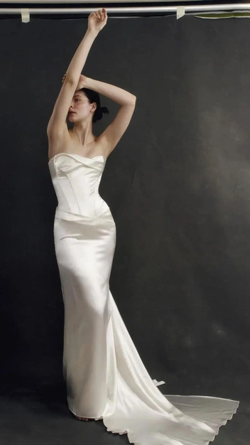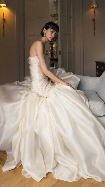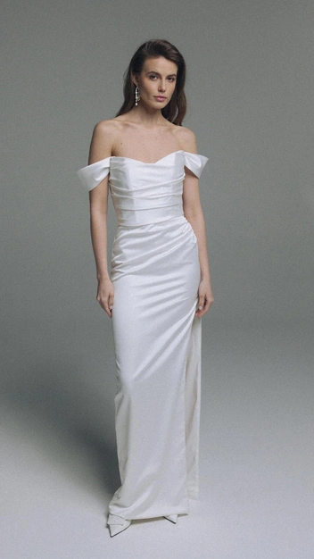 Еще один модный свадебный бренд, воспевающий простоту и «тихую роскошь», — Perle Bridal, который представляет готовые наряды для невест и создает вместе с ними платья мечты. В коллекции марки представлены образы с культовым дизайном: корсетный лиф и соблазнительный подол, вытекающий в длинный изящный шлейф, облегающие образы со спущенными плечами и даже дерзкие мини из кружевных тканей.